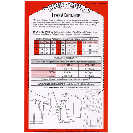 Three's a Charm Jacket Vintage Style Sewing Pattern